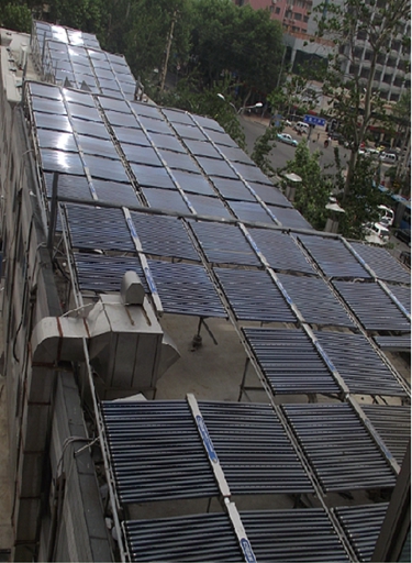 工程规模:一套太阳能系统、一套燃气锅炉系统、一套换热站系统