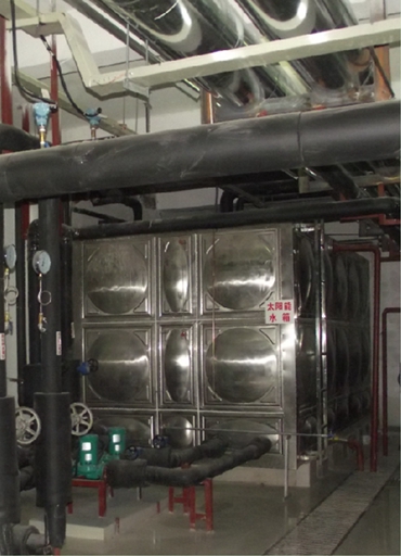 工程规模:一套太阳能系统、一套燃气锅炉系统、一套换热站系统