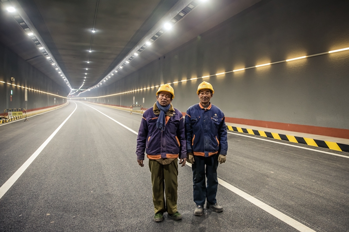 在探访过程中,路遇两位在二环南路工程中工作了3年多的老工人,主动要求与工程合影留念。两位老工人亲身经历并参与了二环南路快速路从初建到全线完工的全过程,已经把工程当作了自己的孩子,留下了深深的眷恋。
