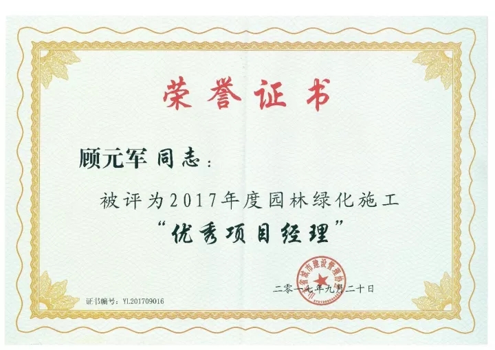 会上,对“省级园林绿化示范工程”及“优秀项目经理”进行了表彰,由济南市政设计集团大明湖园林公司施工的“济南市二环南路建设工程绿化施工一标段”荣获“2017年度省级园林绿化示范工程”奖,顾元军被评为“2017年度山东省城市园林绿化施工优秀项目经理”。