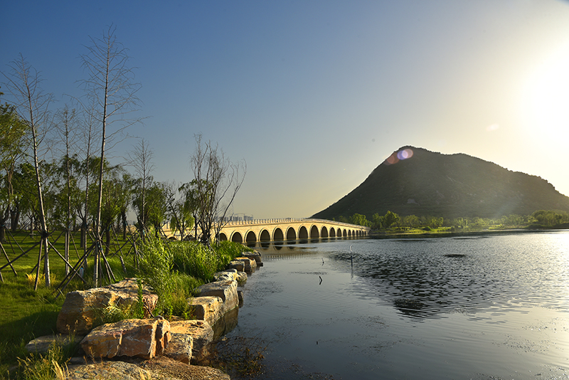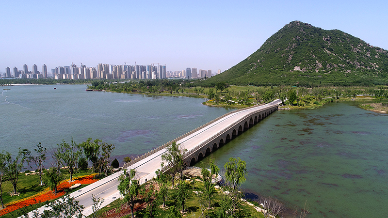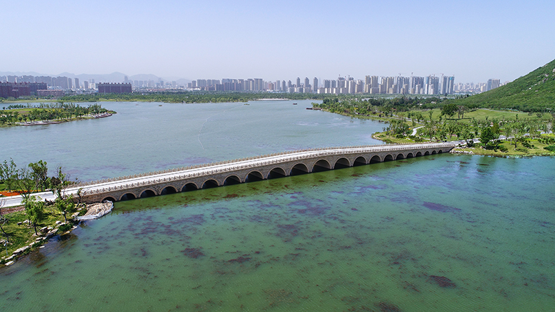 崇正桥,位于华山南侧,连接华山及华山湖南岸,总长约 96 米,为三孔拱桥,是华山湿地公园的重要门户。烟雨桥,位于华山东侧,桥梁全长约 200米,为 21 孔拱桥,状若长虹卧波,是华山湿地公园的优美名片。